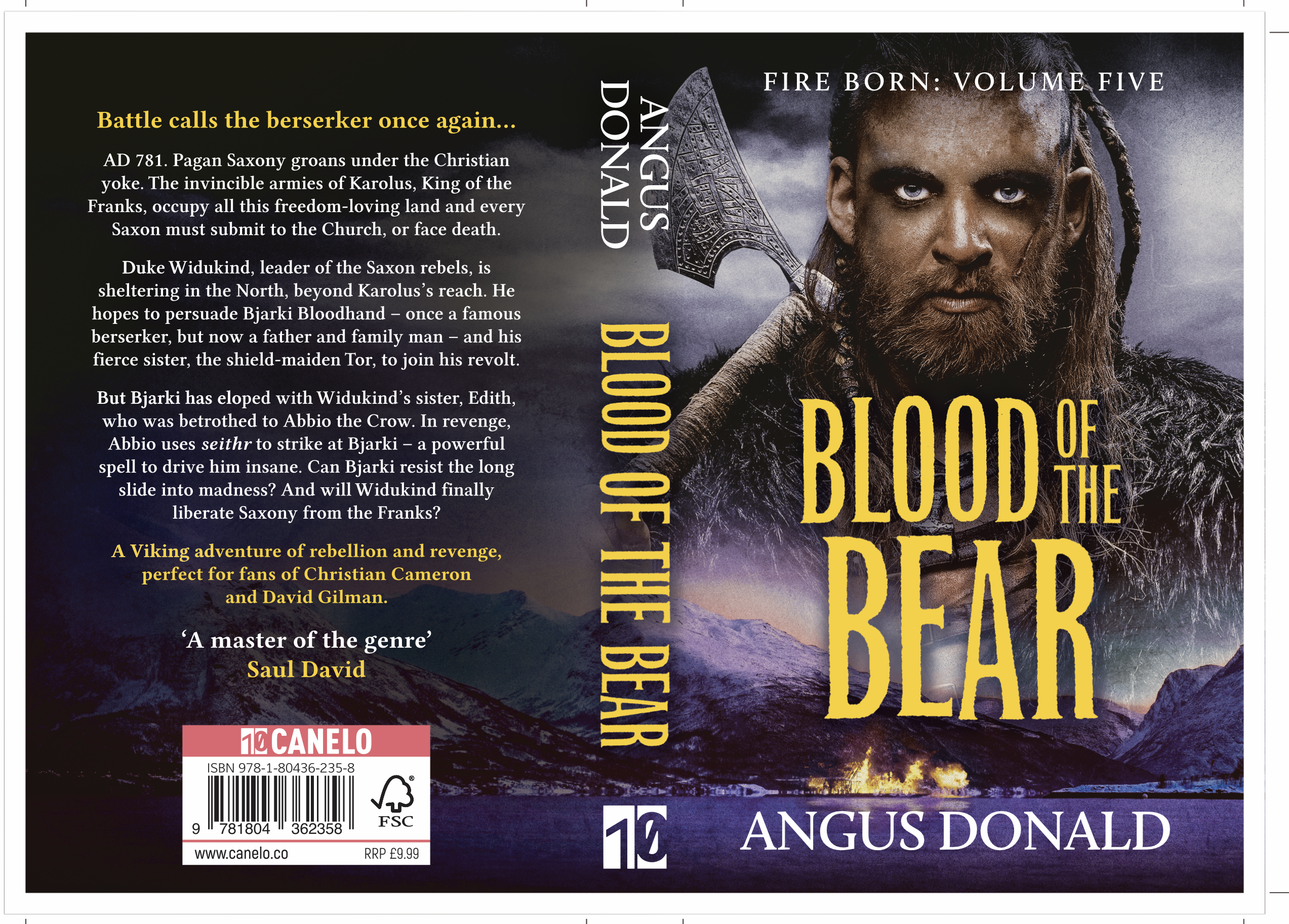 I have just received the finished cover on what will be the fifth and final book in my “Fire Born” Viking series. I have hugely enjoyed writing about Bjarki and Tor, and also achieved a lifetime ambition, which was to explore the inner life of a Viking berserker, but it is time to move on to other projects. When you read Blood of the Bear, which comes out in October, you will see I have left an opportunity to continue writing about some of the main characters in the Fire Born series. But that is for the future. In the meantime, enjoy this magnificent cover, and don’t forget to preorder the concluding book of the series!