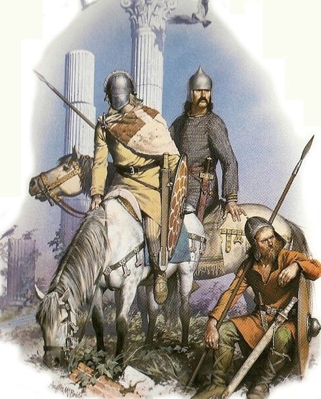 The Goths (also called Ostrogoths, see above) were a Germanic people who occupied territory in Central Europe north of the Danube and, later, on the upper reaches of the Vistula, who fought both for and against the Roman Empire. They were put under pressure by in the 4th and 5th centuries by the Huns, nomadic invaders from the east, possibly as far east as Mongolia, who were ruled by the infamous Attila (below). The Huns crossed the eastern Carpathian Mountains and encroached on Goth homelands in modern-day Hungary and for a long time there was bloody conflict between the two competing peoples.